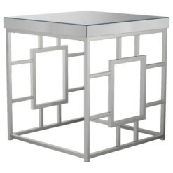 Amalia Square Mirrored Acrylic Crystal Side End Table Silver