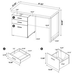 Brennan 47-inch 3-drawer Office Computer Desk White
