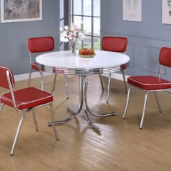 Retro Round 42-inch Wood Top Dining Table White and Chrome